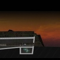 Empieza una conferencia muy importante. Esperamos en el amplio vestíbulo, ampliamente iluminado por dos de sus lados. Se abren hacia arriba las puertas y entramos. Asomamos la vista arriba, y vemos como una compuerta se abre, mostrándonos otros espectadores en la parte superior. Finalizada la visita, decidimos bajar por el paso central para volver andando por el cauce hasta casa.