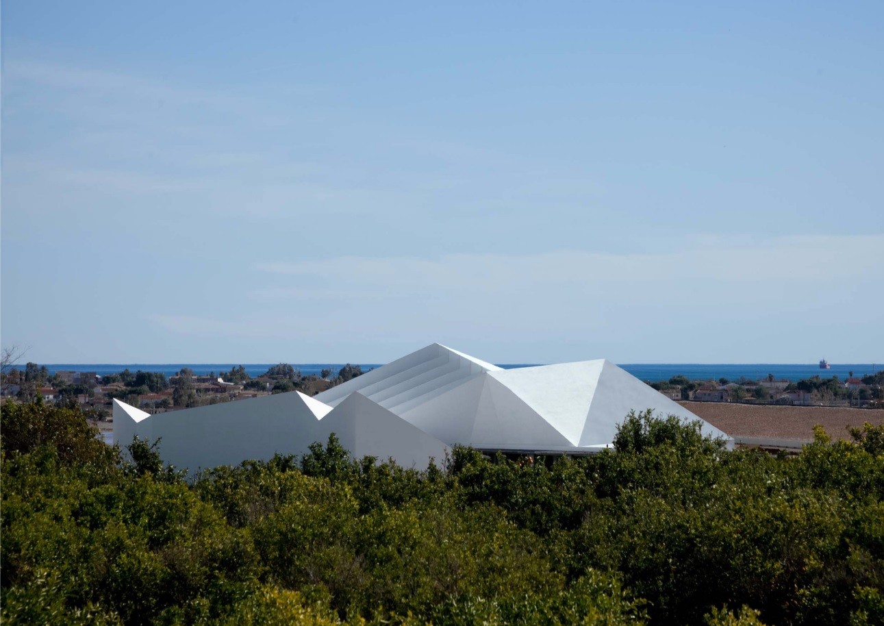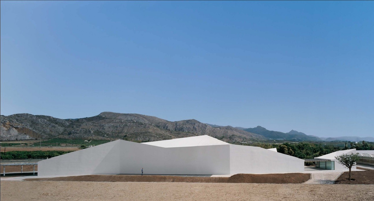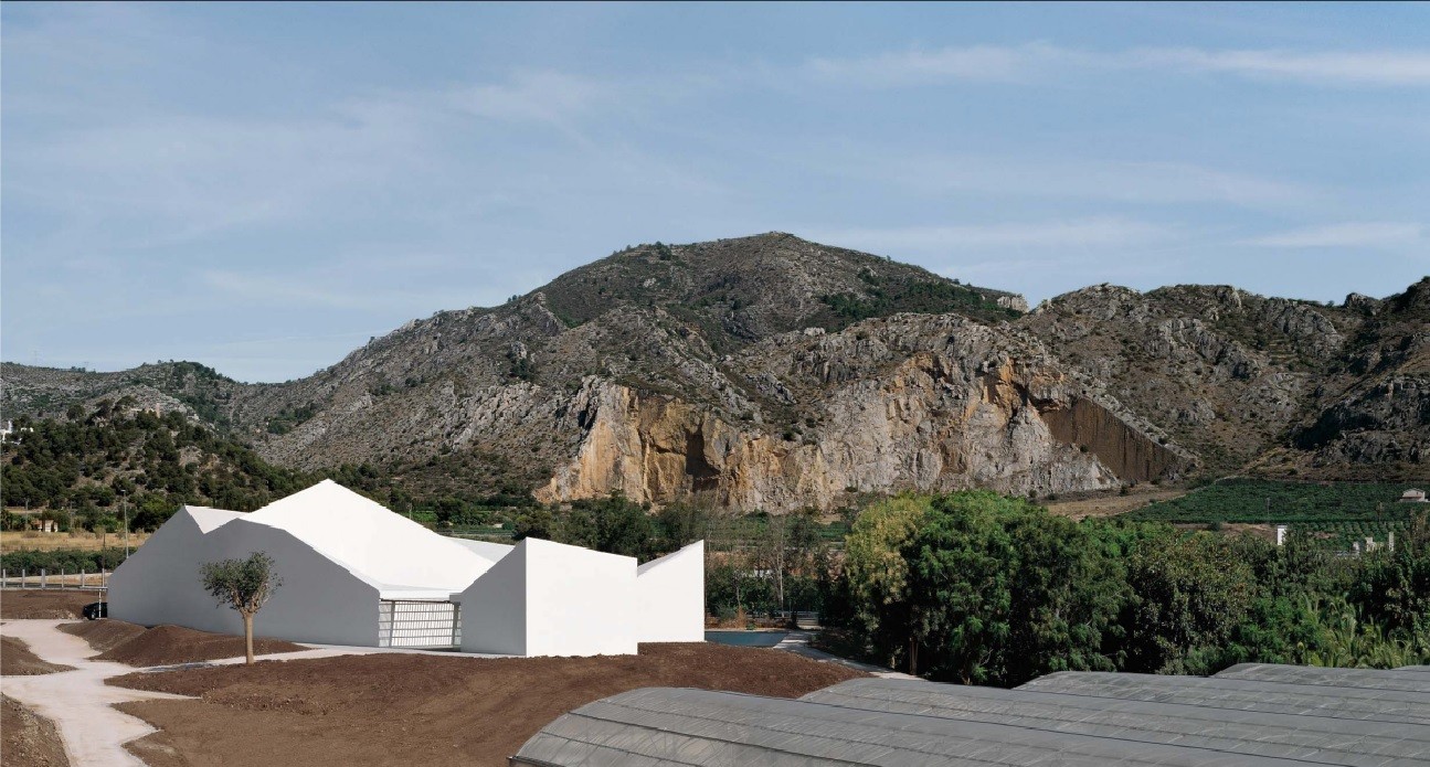 La sede que albergará este conjunto de empresas se sitúa en un terreno de 5,6 Ha junto a la N-340. El proyecto contempla tres actuaciones: un edificio de crujía de 5 m repetida 50 veces con una cubierta inclinada favoreciendo la ventilación cruzada que va cortando las curvas de nivel adaptándose a la pendiente y aumentando la altura según el desnivel y uso de los espacios (vestuarios, zona de trabajo, maquinaría, almacenes, garajes ...).