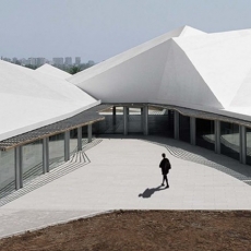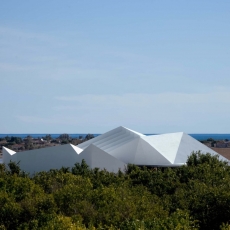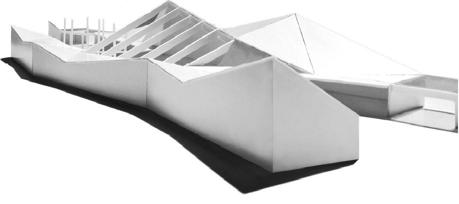 Esta cubierta inclinada, de 250 m. de longitud, recibe un tratamiento vegetal en toda su longitud actuando como telón de fondo de la intervención.