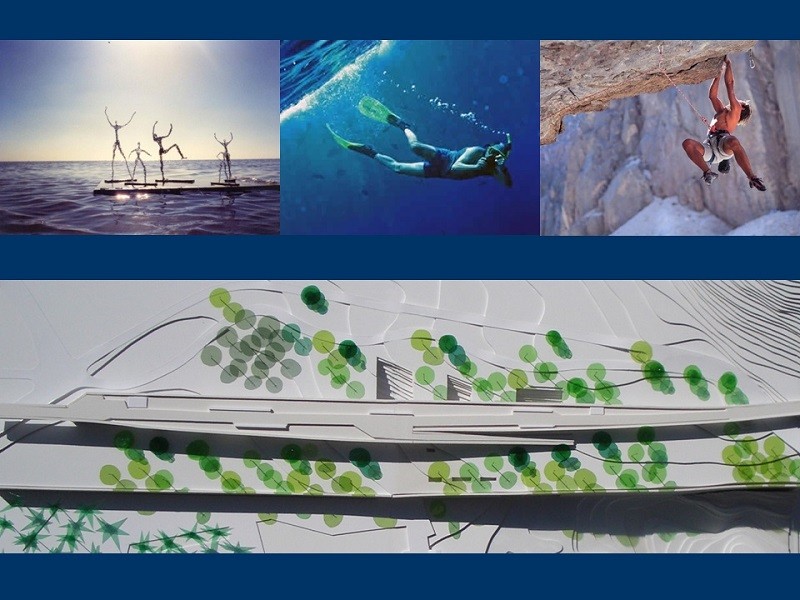Así pues, se recupera la topografía natural del terreno y aparece el proyecto como nexo de unión entre el mar y la montaña.