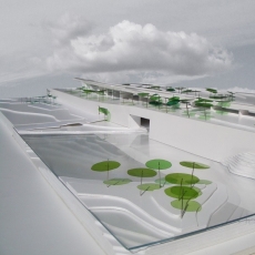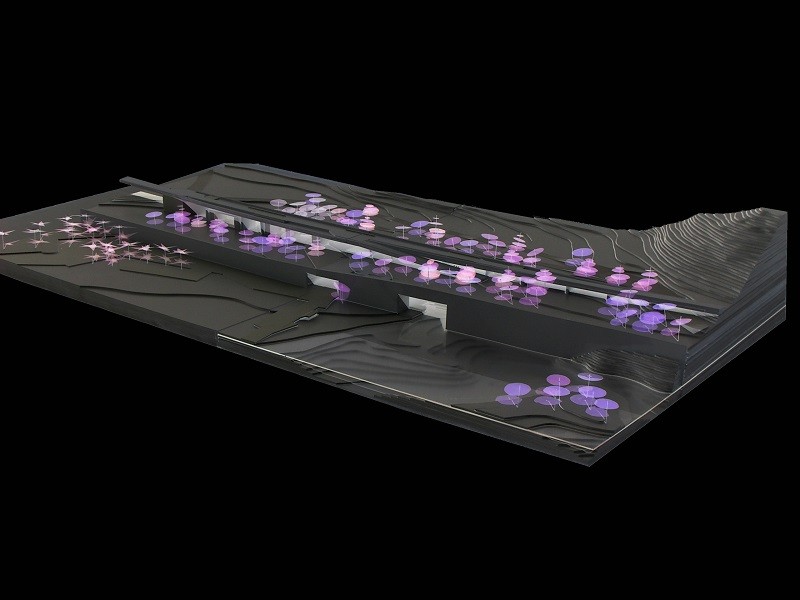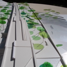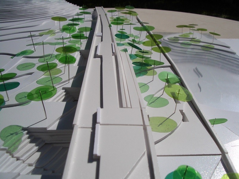 Otros puntos importantes que persigue el proyecto es la introducción como materiales del agua, la tierra, la luz, la montaña y la masa boscosa. Prácticamente la complejidad del proyecto reside en la combinación de los materiales, sobre todo del elemento verde. Se busca la creación de espacios con lo mínimo construido, la arquitectura efímera también tiene parte importante en la actuación.