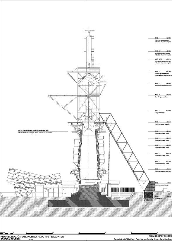 En 1995, la Conselleria de Cultura del Gobierno Valenciano, entendió que lo que se proponía en este estudio no se ajustaba a lo pretendido, por lo que recomendó su revisión y la redacción de un proyecto técnico que satisficiera la deseada relación entre historia y futuro. En base al informe del Jefe de la Unidad Técnica de Arquitectura de la Dirección General de Patrimonio, la Fundación de la Comunidad Valenciana para el Patrimonio Industrial de Sagunto (creada en 1992 por el Gobierno Valenciano), nos encargó en 1996 el Anteproyecto de Rehabilitación del Horno Alto nº 2 de Sagunto, con cuya redacción comenzó nuestra relación con el HA2, que ha culminado en 2012 con la concesión de uno de los Grand Prix Europa Nostra 2012 en la categoría de Conservación.