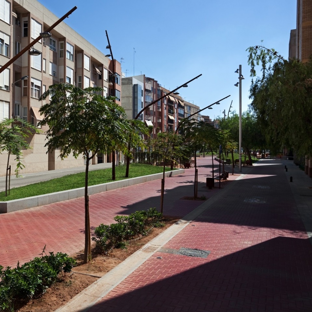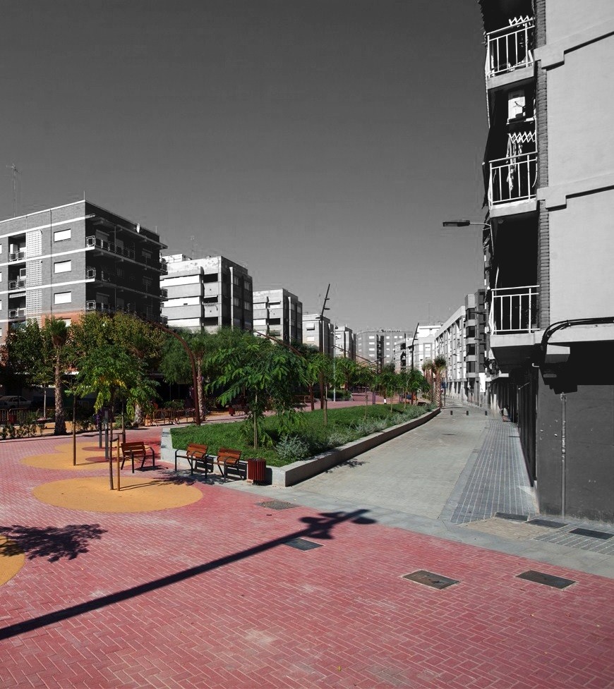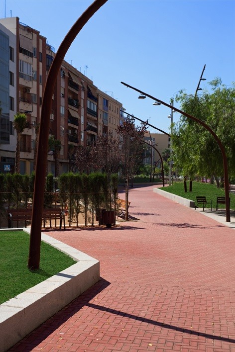 L’actuació està situada a Alboraia, municipi veí de la ciutat de València, on surgeix l’oportunitat de soterrar les vies de la lína del metro que dividien el nucli urbà en dues parts, gairebé incomunicades. Aprofitant el projecte de soterrament, l’Ajuntament aposta per convertir l’antiga traça del tren en un passeig per a vianants, un eix urbà lligat a una sèrie d’actuacions municipals amb l’objectiu de crear una nova xarxa d’espais públics que vertebri la ciutat.
