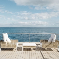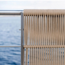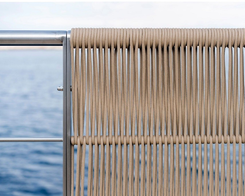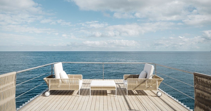 El mobiliario de la unidad flotante está diseñada en Teka natural limitando al máximo el uso de los materiales, en la búsqueda de la máxima simplicidad.