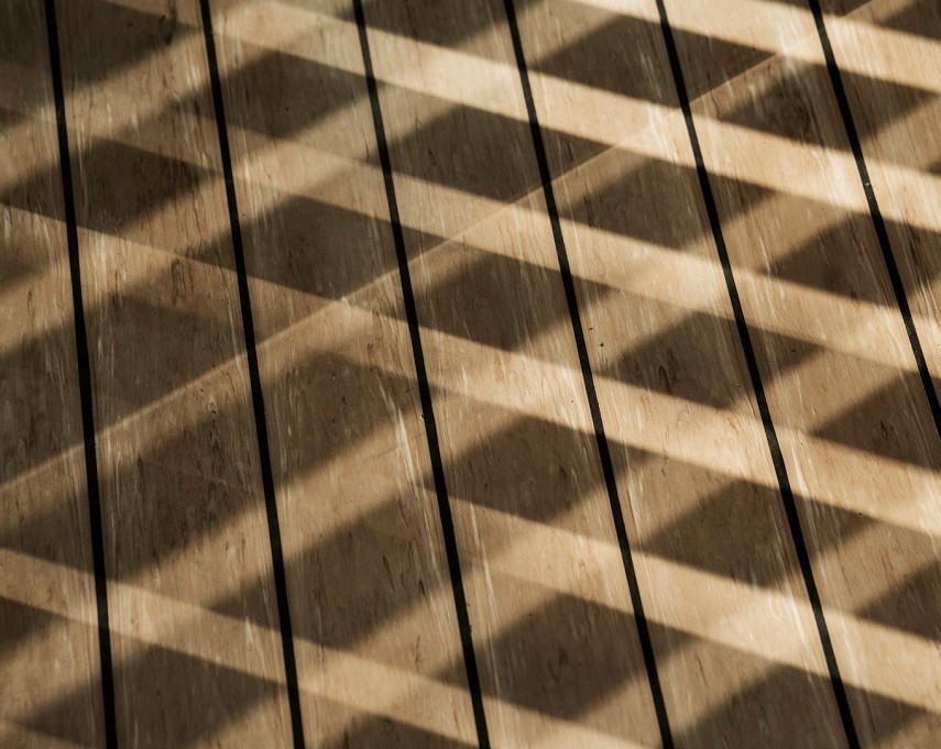 El interior se propone neutro, totalmente uniforme, suelo y techo están proyectados común material natural: Teka alistonada, material tradicionalmente utilizado en las cubierta de las embarcaciones como referencia clara al mundo náutico su estética y texturas.