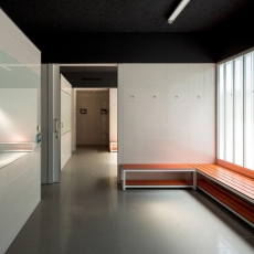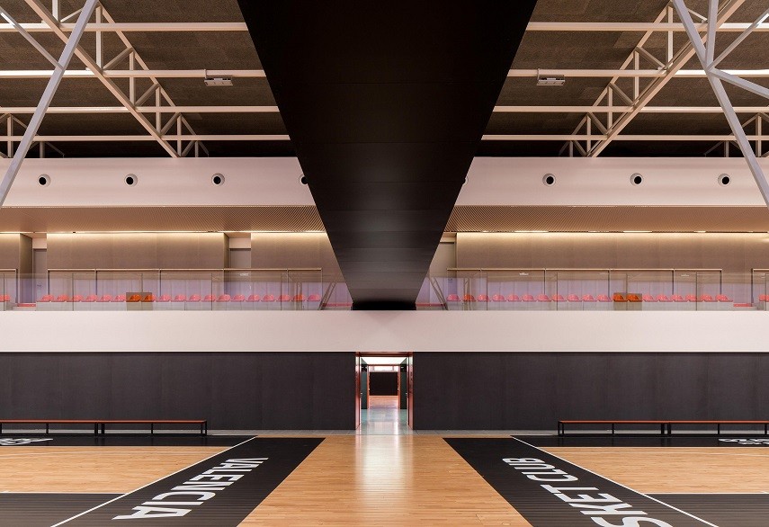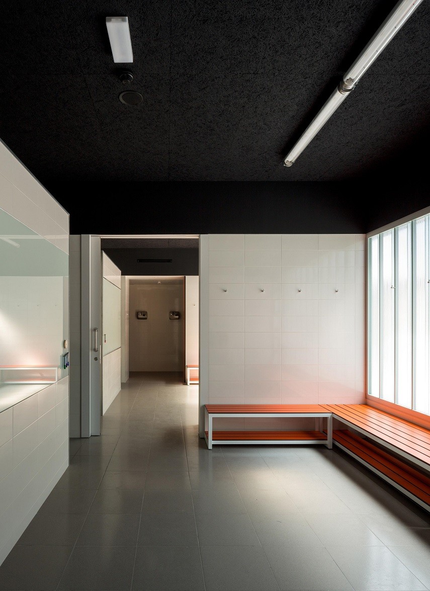 — Un nivel inferior que alberga el núcleo de servicios formado por vestuarios independientes para cada pista, gimnasio, zona de enfermería y fisioterapia.