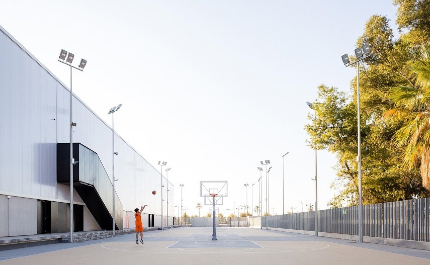 El proyecto se ubica en la parcela anexa al pabellón de La Fuente de San Luis, actual sede del club, y cuenta con una superficie de unos 15.000m2. El programa se reparte en dos volúmenes y lo componen un total de 13 pistas: 9 cubiertas y 4 descubiertas.