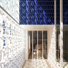 El proyecto se ha materializado buscando integrar los materiales tradicionales presentes en el contexto de la isla, entendiendo la construcción del hotel como un conjunto de soluciones constructivas ya testadas históricamente en el lugar en cuanto a durabilidad, mantenimiento y funcionalidad. Se trata de reinterpretar la ejecución de dichos materiales hacia una manera más contemporánea de entender “lo construido”.
