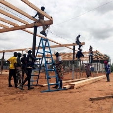 Decidimos construir y dotar de material un taller: una estructura física, así como máquinas de coser. Creamos el propio espacio de trabajo, formamos a la gente desde el momento de la construcción y cerrando el circulo, creamos empleo con aportaciones de ayuda económica para fabricar ropa, accesorios y elementos de almacenamiento para los niños y familiares de las aldeas cercanas.