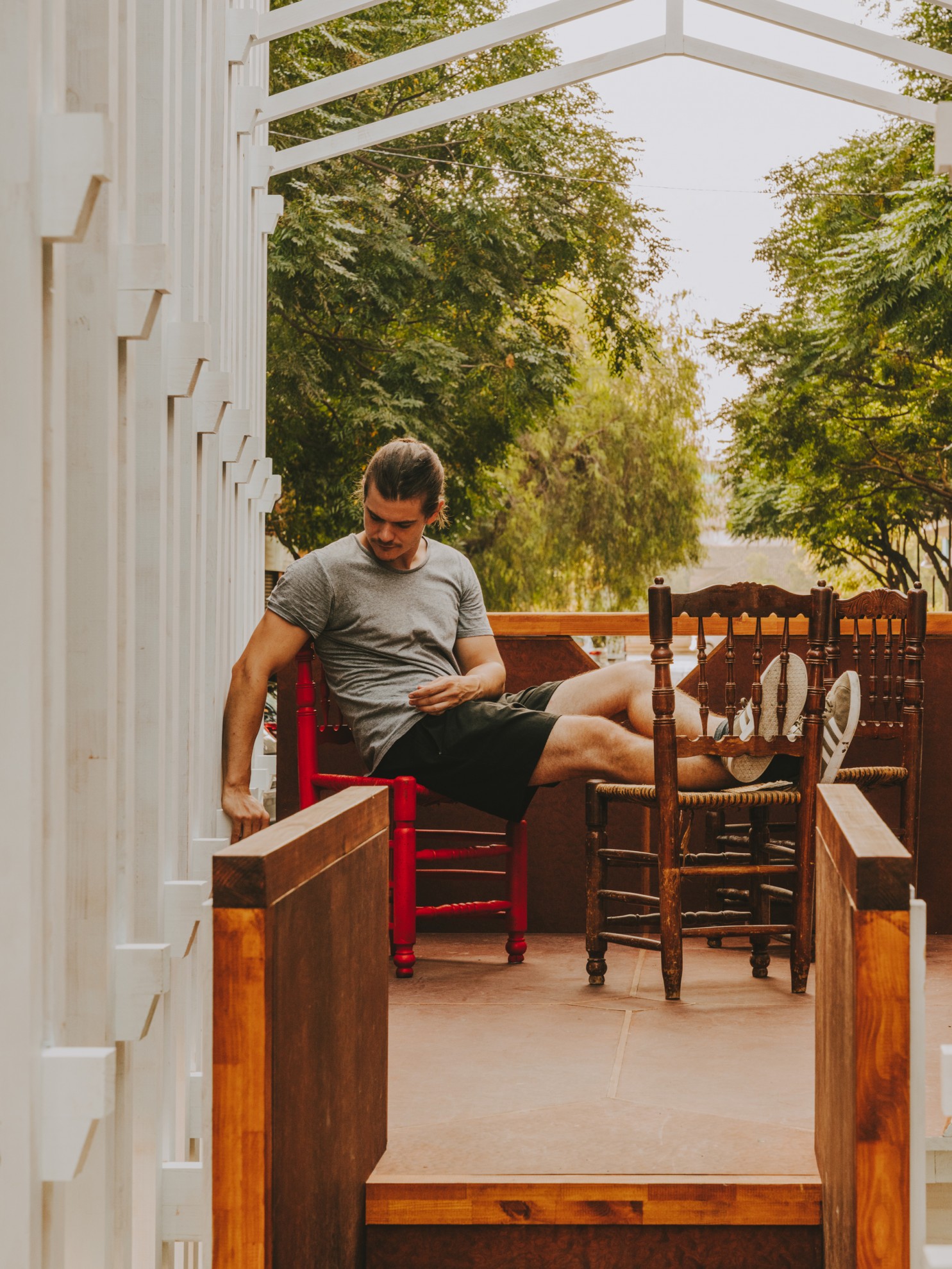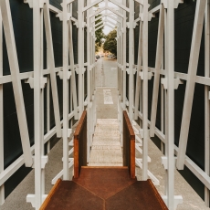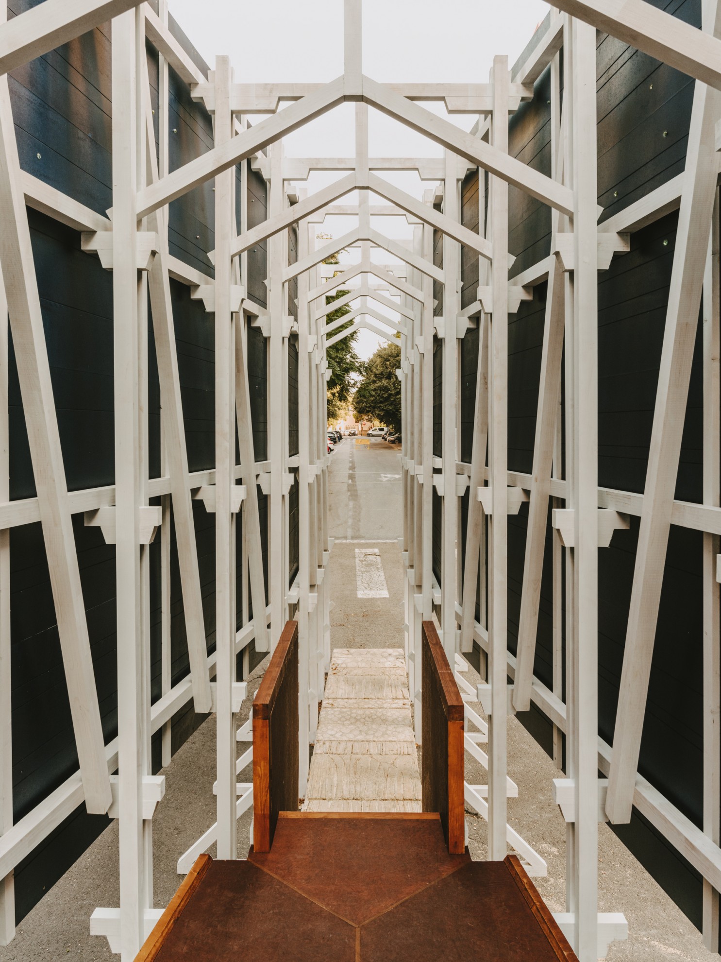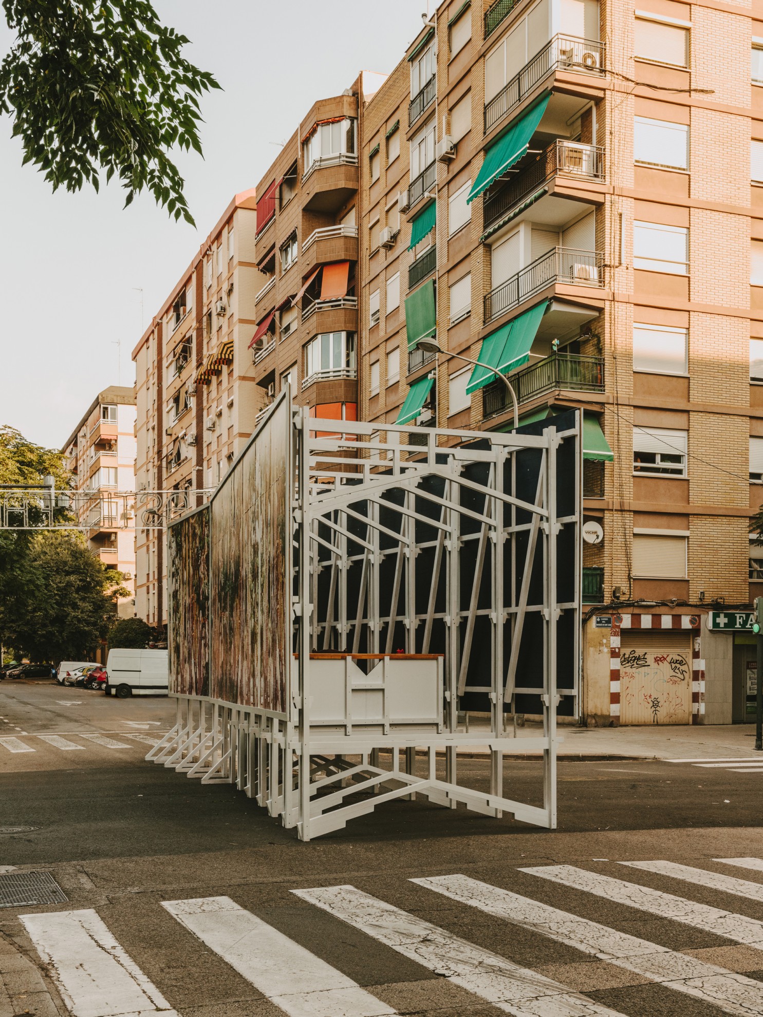 La intervención reclama un espacio íntimo y familiar en el festejo. Un espacio propio. Entre los bastidores que sostienen la cara visible de la falla se construye y ocupa una estancia oculta, de factura más cuidada y carácter doméstico.
