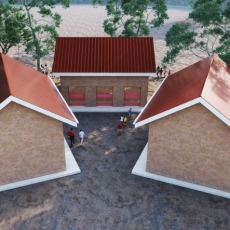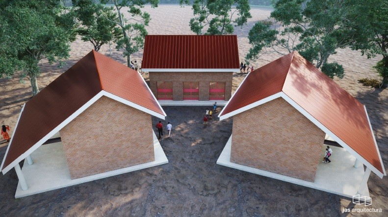 -Las cubiertas se ejecutan mediante cerchas maderas de fabricación local con chapa grecada, lo que obliga a trabajar con soluciones de ventilación cruzada.